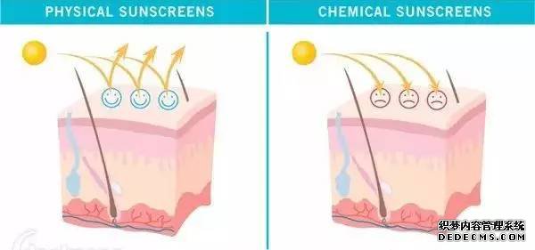4。物理防晒化学防晒和生物防晒都是什么鬼? ![]() 不是什么鬼,只是防晒剂防护模式。打一个比方,物理防晒成分,就像在我们肌肤表面装上一面镜子,把紫外线都反射了出去。而化学防晒成分是通过吸收溶解紫外线来起效,类似一块海棉。生物防晒是本身不具有紫外线吸收能力,但在抵御紫外线辐射中有辅助作用的成分,多是植物提取,算是一种间接防晒,并不是防晒剂的主流。
